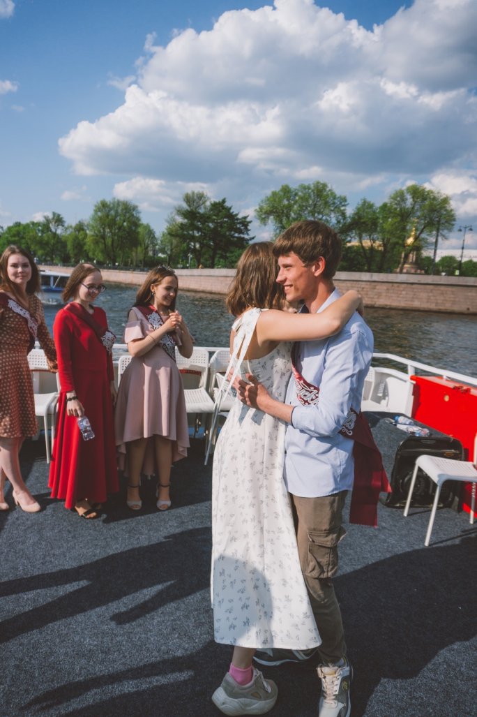 Выпускной — это особенный, веселый и в тоже время волнительный день! Ребята провели его в самой настоящей Петербургской атмосфере, катаясь на теплоходе по главным достопримечательностям города в компании педагогов и друзей.